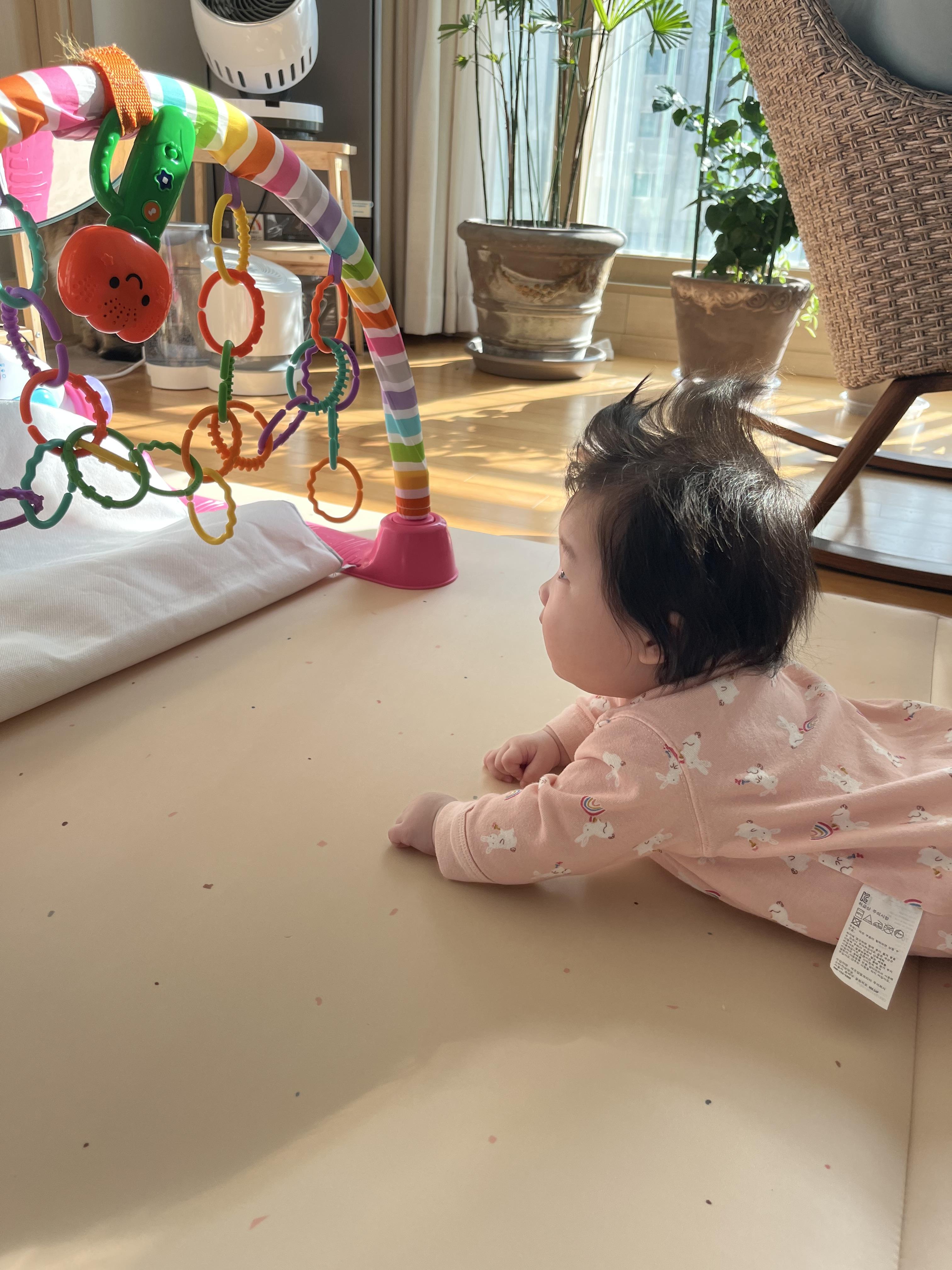 저희 아기는 100일쯤 뒤집기 시작했는데요.